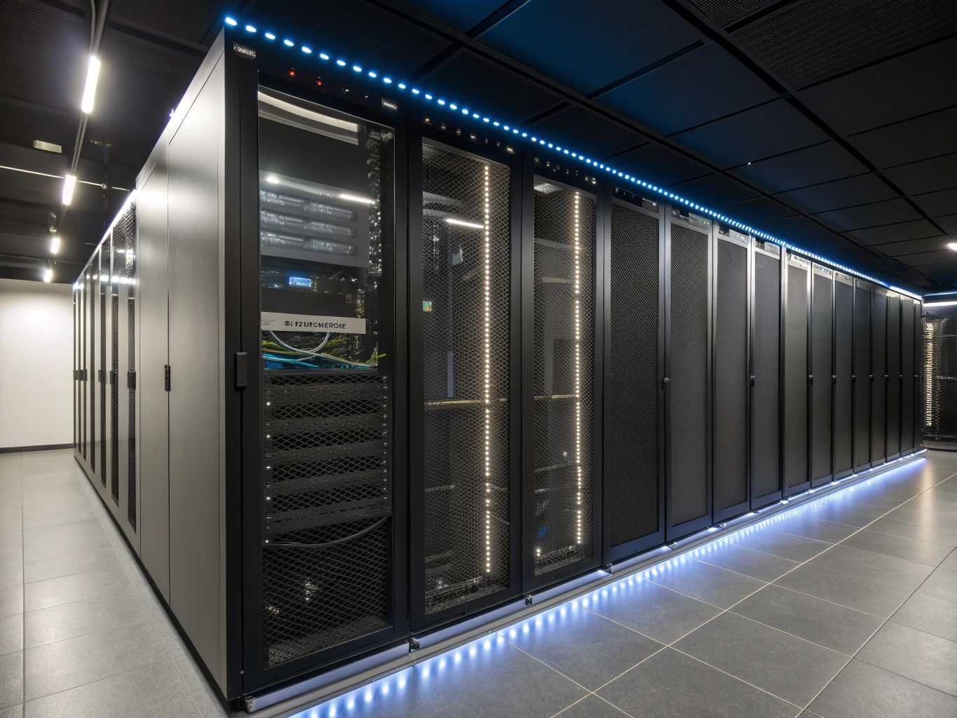 High-end server hardware with cyber lime light-streaks